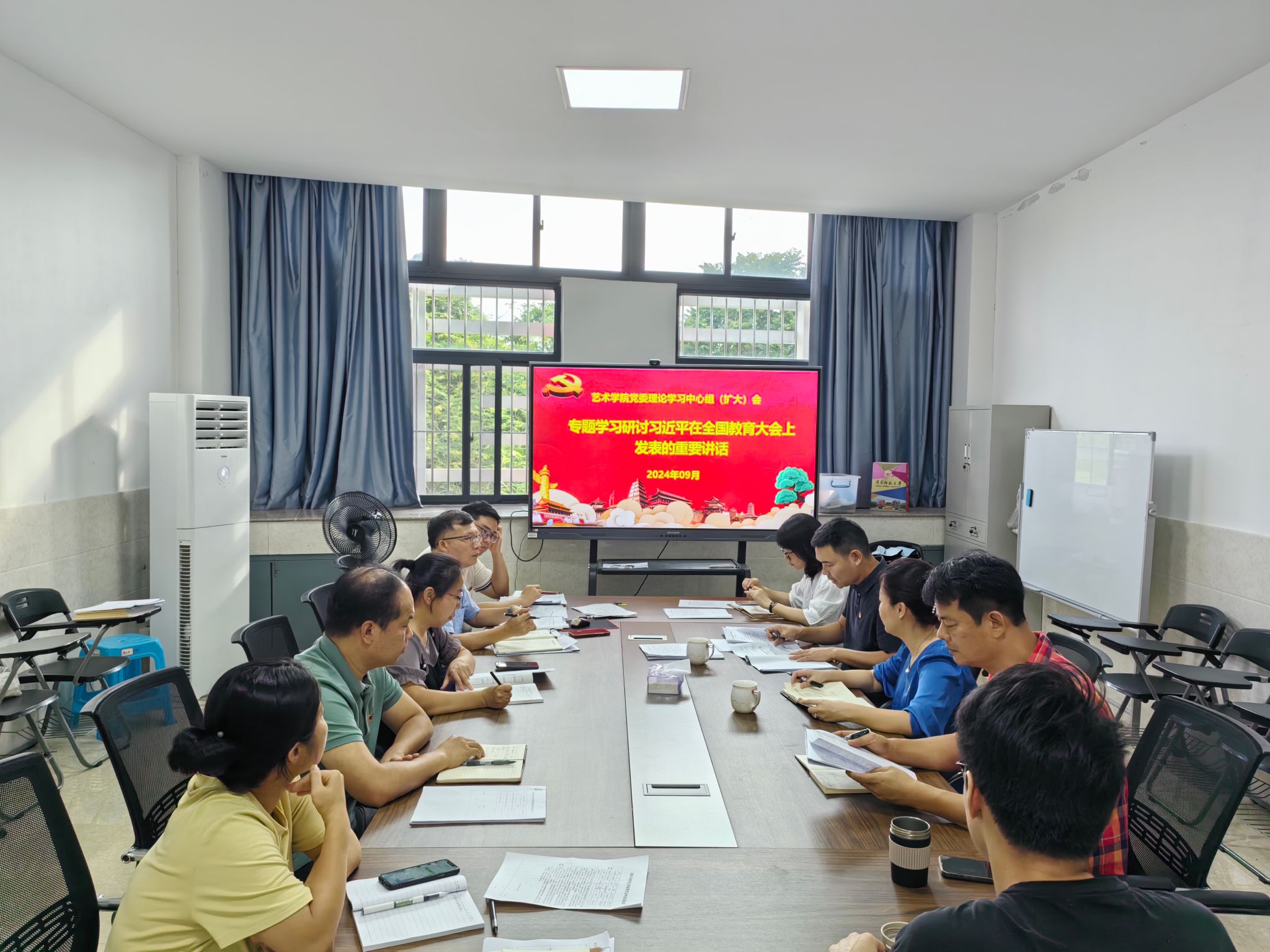 9月26日下午,动漫在线 党委理论学习中心组召开学习会,围绕“习近平在全国教育大会上发表的重要讲话”开展集体研讨,学院党委书记潘艺阳领学并作重点发言,其他班子成员结合分管工作实际作交流发言。